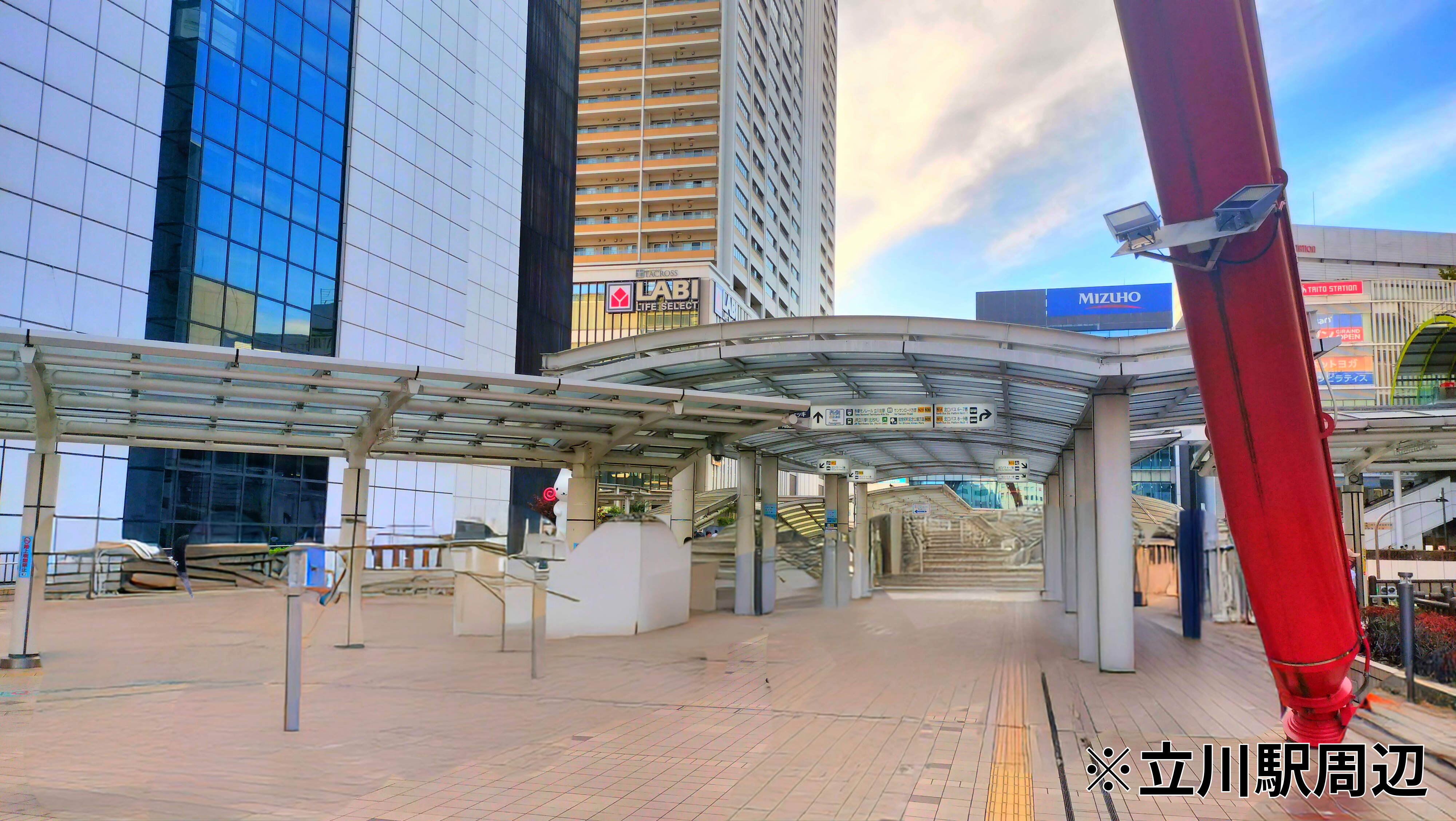 住まいから駅までは、美しい並木が続く歩車道分離の「緑川通り」とペデストリアンデッキで快適にアクセス。車を気にせず歩ける道のりは、夜の帰宅も安心です。